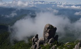 一気に視界が開け、眼前に景色が広がった。右にみえる行者岩が登山意欲をそそるが体力がない。